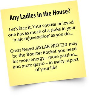 Take 60 DAYS to try JayLab Pro T20 yourself. I fully expect you’ll see gratifying results within the first 48 hours. But within 60 days, if you’re not 100% convinced that T20 is doing what I promised to give you STRONGER arms and legs… a RAZOR-SHARP mind… a LEANER body…MOUNTAINS of energy… and TIGER-LIKE passion in the bedroom...