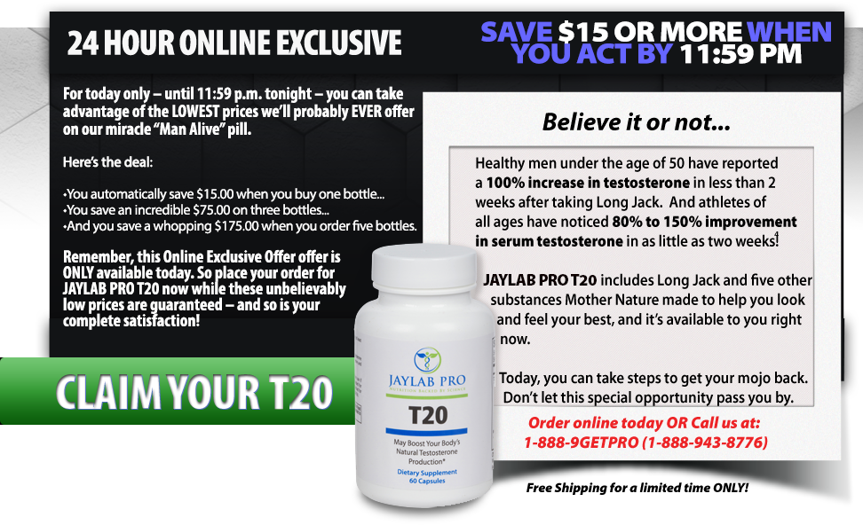 P.S. Unlike inferior brands, you won’t find JayLab Pro T20 in any stores. My policy has always been to sell directly to you – thereby cutting out unnecessary middleman expenses. That’s the reason I can offer you a super-premium Big T supplement at such an affordable price.